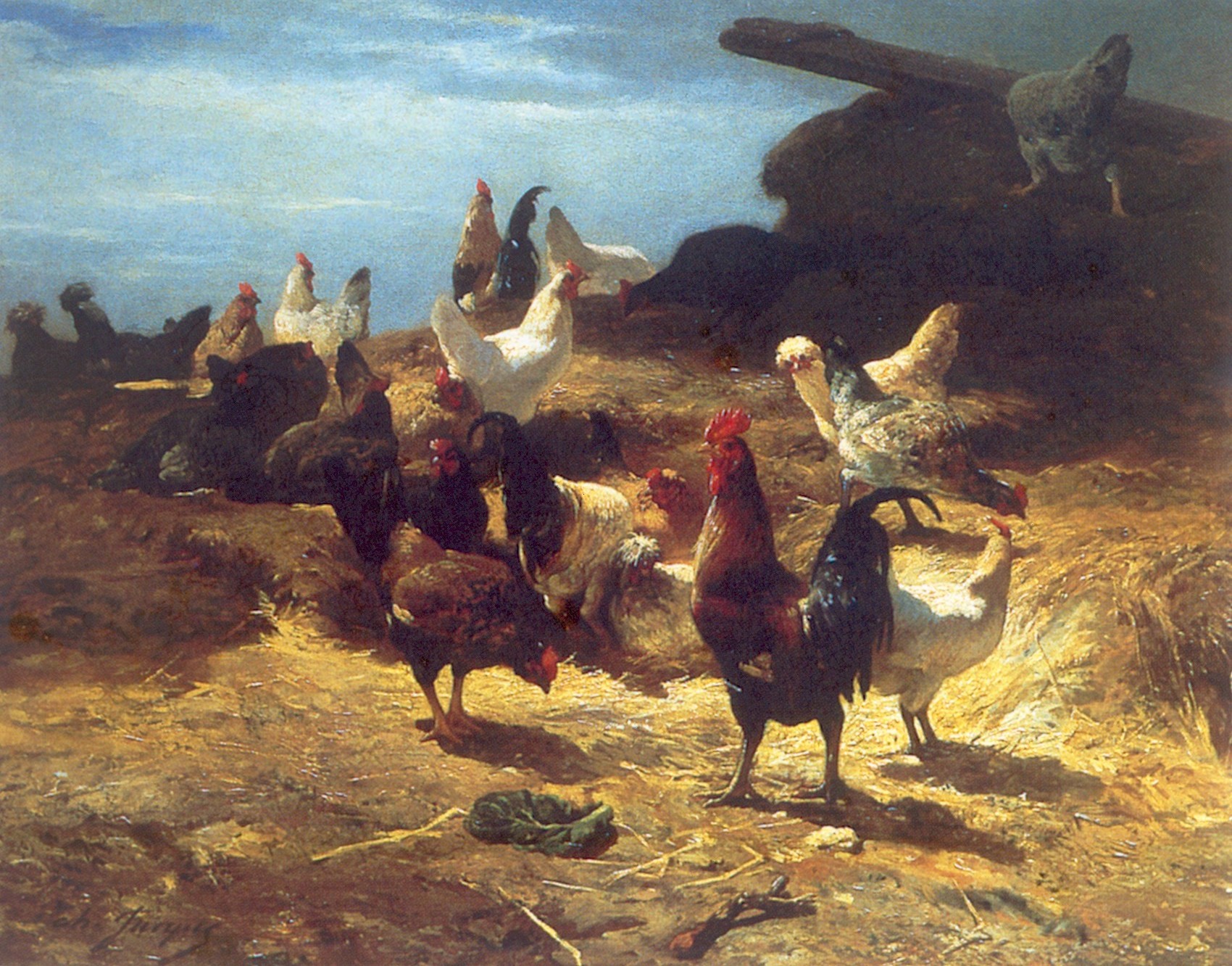 De gauche à doite : La sortie du troupeau , 1860 ( Musée de Philadelphie ) - Coq et poule - Basse-Cour ( Musée des Beaux Arts de Béziers )