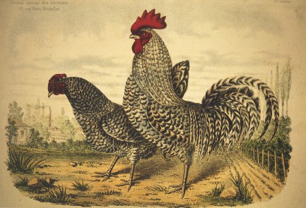 poulettes trois quarts sang brakel seraient noires, mais nous ne verrions plus de coq complètement noirs, à moins que de